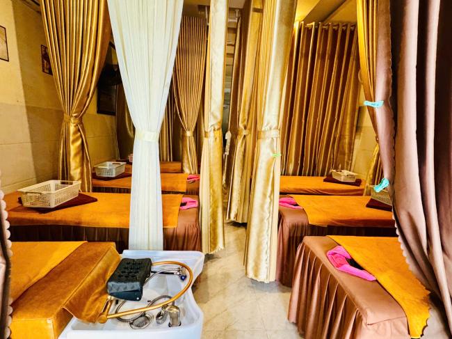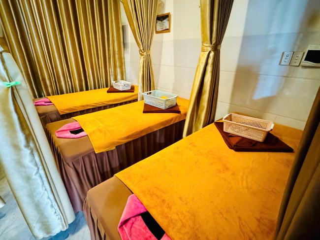 - THAI MASSAGE: Kĩ thuật viên sử dụng toàn bộ cơ thể để kéo căng và tác động lên các cơ và khớp trên cơ thể , kết hợp cùng với các loại dầu thiên nhiên mang đến cảm giác thư thái, loại bỏ căng thẳng và trị liệu hiệu quả.